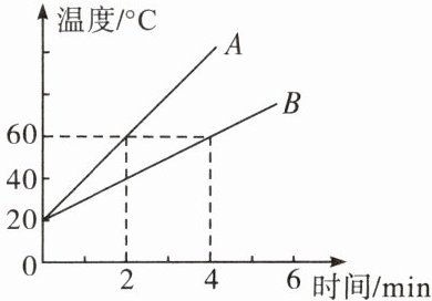 4. (四川凉山州中考)用两个完全相同的电加热器分别给质量相同的A、B两种液体加热,加热过程中,温度随时间变化的图像如图所示,从图中看出 (