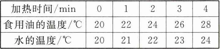相等的水和食用油。(2) 加热过程中,水和食用油吸热的多少是通过