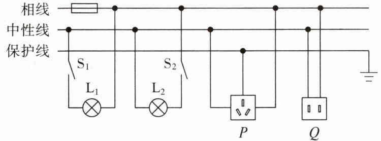10.(湖北武汉青山区期末)如图是小明设计的家庭电路的电路图,下列对此电路图的分析错误的是(