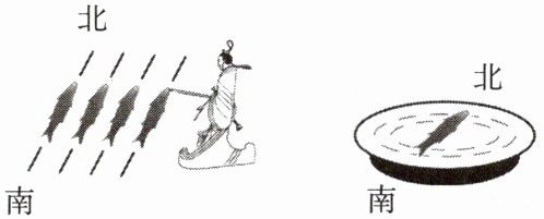6. (河北石家庄阶段练习)人类最早的磁化技术出现在我国宋代。据《武经总要》记载,如图所示,古人先将鱼形铁烧红,令铁鱼头尾指向南北,然后将其放入水中冷却,依靠地磁场获得磁性,再将其放入水中漂浮,制成指南鱼,图中是它静止时的指向。下列判断不正确的是(