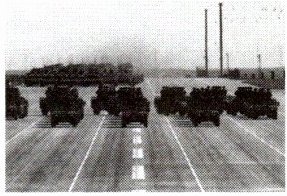 9. 如图所示,中国人民解放军力量日益壮大,在某次阅兵式上众多新式战车精彩亮相。某辆轮式伞兵突击战车以$72km/h$的速度在水平地面匀速直线行驶时,发动机的功率为$6×10^{4}W$。求:($q_{汽油}= 4×10^{7}J/kg$)