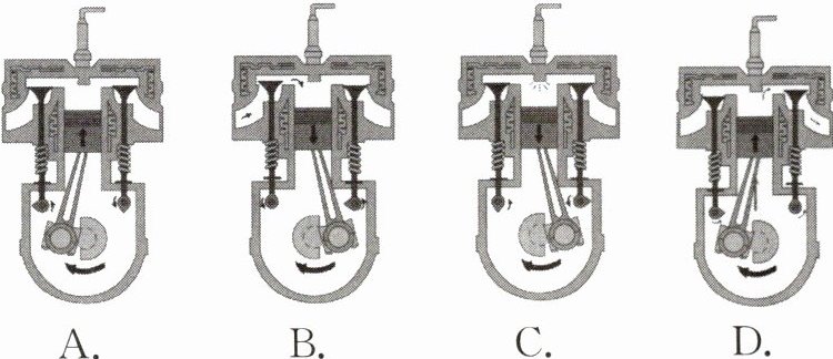 2. 如图所示是小强在家烧开水时壶盖被顶起的场景,汽油机的四个冲程中,与其能量转化相同的是(