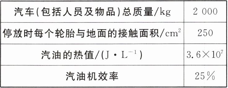 这辆车(包括人员及物品)停放在水平地面上时对地面的压强$p=\frac{F}{S}=\frac{2× 10^{4}\ N}{4× 250× 10^{-4}\ m^2}=2× 10^{5}\ Pa$;