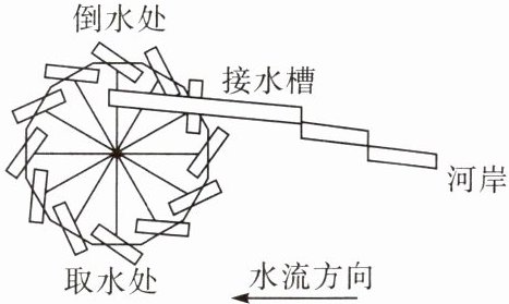 9. 《天工开物》是我国古代的科学著作,其中这样写道:“凡河滨有制筒车者,堰陂障流绕于车下,激轮使转,挽水入筒,一一顷于枧内,流入亩中,昼夜不息,百亩无忧。”该段文字描述了筒车这样一种以水流作动力,用来取水的机械,如图所示。筒车“昼夜不息”,