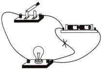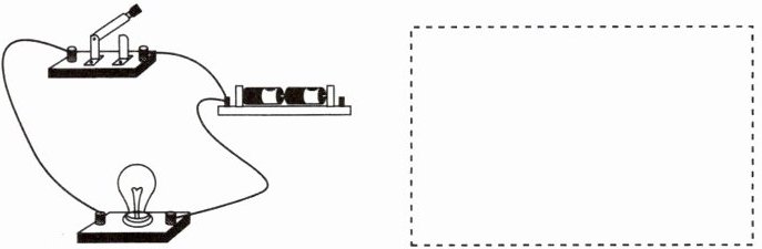 9. 如图所示的电路中有一处错误,请用笔在连错的导线上标上“×”,并画出正确的接法,然后在右边方框内画出正确电路的电路图。