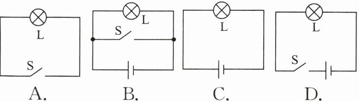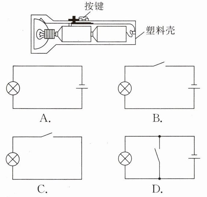 8. (河北邯郸校级月考)手电筒的结构如图所示,按下按键时,电路接通小灯泡发光。该手电筒的电路图,图中正确的是(