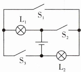 D.同时闭合 $ S_1 $、$ S_2 $、$ S_3 $ 时,灯 $ L_1 $、$ L_2 $ 都发光