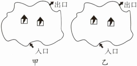 (1) 游客由入口到出口,先后经过两个游览点,请在图甲中用笔画线画出游览路线;