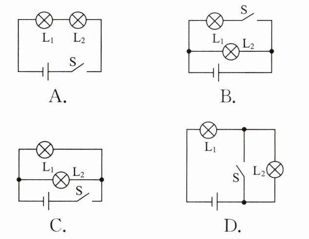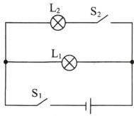 (1)只闭合开关$S_{1}$,灯$L_{1}$亮,灯$L_{2}$不亮;