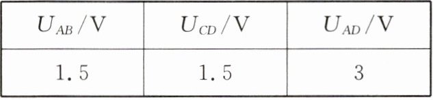 (3)由表中数据可知,L₁两端的电压U_{AB}加L₂两端的电压U_{CD}等于电源电压U_{AD},故可得:在串联电路中,电源电压等于各用电器两端电压之和。