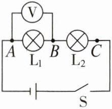 (3)在测量灯 $ L_1 $ 两端的电压时,闭合开关,发现灯 $ L_1 $ 不亮、灯 $ L_2 $ 亮,且电压表示数为零,原因可能是