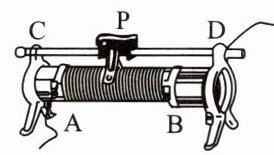 4. 如图所示,滑动变阻器 A、D 两接线柱接入电路,已知 AB 间的最大电阻为10 Ω,当滑片 P 移到最左端时,AD 间的电阻是