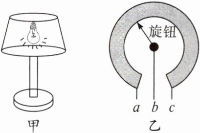 2. (山西忻州期中)如图所示,甲为可调亮度台灯,乙为电位器的结构图,b与金属滑片相连,转动旋钮可调节灯泡亮度。下列说法正确的是(