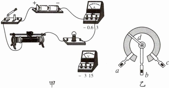 (4)如图乙为旋转式变阻器的结构图,a、b、c为变阻器的三个接线柱,d为旋钮触片。将该变阻器接入电路中调节灯泡的亮度,当顺时针旋转旋钮触片时,灯泡变亮,则应将接线柱____(选填“ab”或“bc”),并将它与灯泡串联。