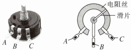 6. (山东德州期中)在收音机等电器中,有一种叫电位器的变阻器。电位器的外形及其内部构造如图所示。图中A、B、C三个焊接点相当于变阻器的三个接线柱。使用电位器时,下列说法不正确的是(