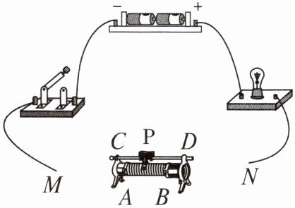)A.若将$A$、$C$端连入电路,向$D端移动滑片P$,灯泡变亮