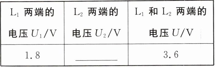 (4)排除故障后,闭合开关,调节滑动变阻器滑片到合适的位置,分别记下电压表$V_{1}$、$V_{2}$的示数,实验数据记录如表所示;为了测量小灯泡两端的电压,小辉认为保持电压表$V_{1}的连接点D$不动,断开开关,并将连接$C点接线柱的导线改接到L_{2}的F$连接点,就可测量灯泡$L_{2}$两端的电压,他的操作存在的问题是____;