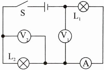 (3)若灯泡$L_{1}$灯丝烧断,则电压表$V_{1}和V_{2}$电压表的示数分别为多少?