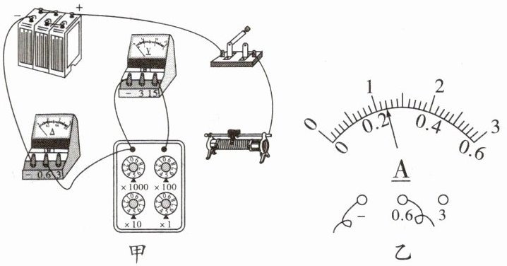 (3)将电阻箱调到 $ 15 \, \Omega $,闭合开关,发现电流表示数如图乙所示,示数为______ $ A $,该电流值与 $ 15 \, \Omega $ 电阻值______(选填“能”或“不能”)作为第二组数据记在表格中;此时电压表示数为 $ 0 \, V $,可能发生的故障是______。