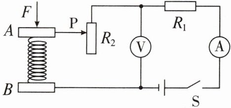 7. 如图所示是小丽设计的压力传感器的原理图,其中 $ R_{1} $ 是定值电阻,$ R_{2} $ 是滑动变阻器。当压力增大时, (