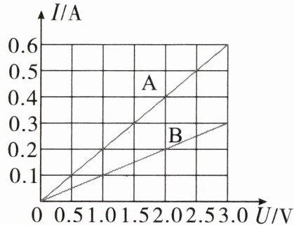 D.将它们串联后接到电压为 $ 3 \, V $ 的电源上时,$ A $、$ B $ 电压之比为 $ 1 : 2 $