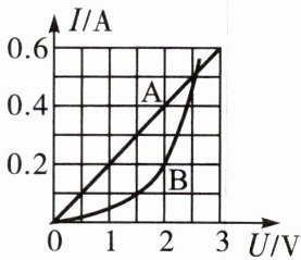 5. (河北保定期末)在某一温度下,连接在电路中的两段导体 $ A $ 和 $ B $ 中的电流与其两端电压的关系如图。由图可判断,$ A $ 导体的电阻为 ______ $ \Omega $;$ B $ 导体两端电压为 $ 3 \, V $ 时,通过 $ B $ 导体的电流为 ______ $ A $。若将导体 $ A $ 和 $ B $ 串联在电源电压为 $ U $ 的电源下,通过导体 $ A $ 的是 $ 0.3 \, A $,则 $ U = $ ______ $ V $;若将导体 $ A $ 和 $ B $ 并联在电源电压 $ U = 2.5 \, V $ 的电源下,则干路电流是 ______ $ A $。