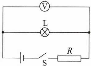 4. 如图所示的电路,电源电压为 $ 6 \, V $ 且保持不变,$ R = 10 \, \Omega $,当闭合开关 $ S $,电压表的示数为 $ 2 \, V $,以下判断正确的是 (