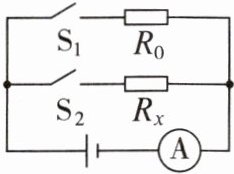 ①断开开关 $ S_2 $ 、闭合开关 $ S_1 $, 记录电流表的示数为 $ I_0 $ ;