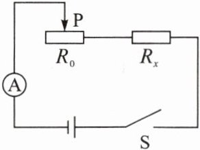 2. 用如图所示的电路测量定值电阻 $ R_x $ 的阻值。如果没有电压表, 电源电压未知, 可以用最大阻值为 $ R_0 $ 的滑动变阻器来测量电阻 $ R_x $ 的阻值。闭合开关后, 滑动变阻器滑片在最左端时, 电流表示数为 $ I_1 $ ; 滑动变阻器滑片在最右端时, 电流表示数为 $ I_2 $, 则电阻 $ R_x = $