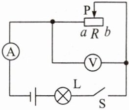 2. (安徽中考)如图所示电路中,电源电压不变,$ R $ 为滑动变阻器,$ L $ 为小灯泡(假设灯丝电阻不变)。闭合开关 $ S $,滑动变阻器的滑片 $ P $ 从 $ b $ 端向 $ a $ 端滑动的过程中(