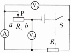 D.电压表 $ V_{2} $ 示数的变化量与电流表示数的变化量的比值变小