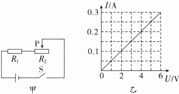 2. (河北邯郸期中改编)如图甲所示电路$,R_2$为定值电阻,电源电压不变,闭合开关S,将滑片P从b端移动到a端的过程中,电流表和电压表示数变化关系如图乙所示。下列说法正确的是 (