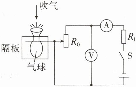 2. (河北廊坊期末)科技小组自制的肺活量比较装置如图所示,若某同学肺活量较大,吹气时,气球胀大,隔板向上运动。下列说法正确的是(