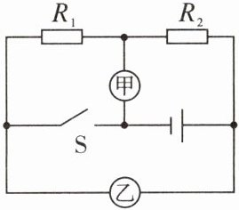 $ \Omega $;如果甲、乙两表均为电流表,当开关$ S $断开时,两个电阻并联