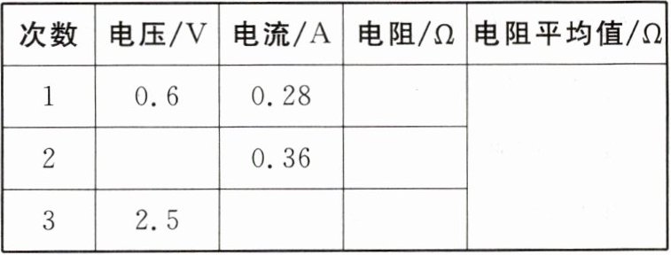 7. (河北唐山期中)在如图所示的“用电流表和电压表测量电阻”的实验中,所用小灯泡正常发光时电压为$ 2.5 V $。