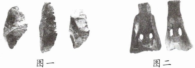 (1)图一:北京人。图二:河姆渡人。图一:打制。图二:磨制。