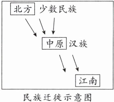 (4)北方少数民族从什么时候开始迁往中原? (1 分)什么原因导致中原汉族迁往江南? (1 分)