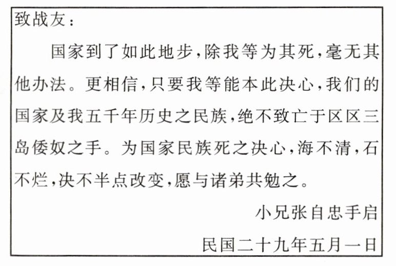 8. 如图是张自忠的一封书信。该书信写于(