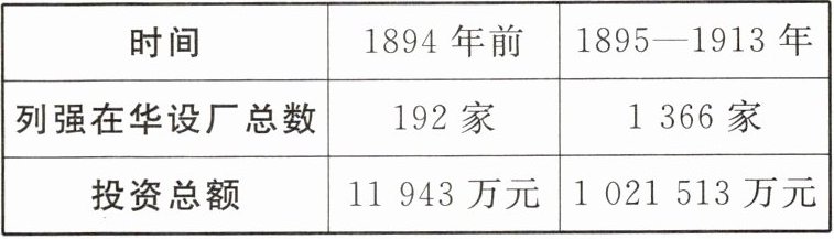 C [1895年签订的《马关条约》允许日本在中国通商口岸开设工厂,其他各国援引片面最惠国待遇,也纷纷在中国开设工厂,因此1895—1913年出现了列强在华设厂总数和投资总额迅速增长的趋势。]