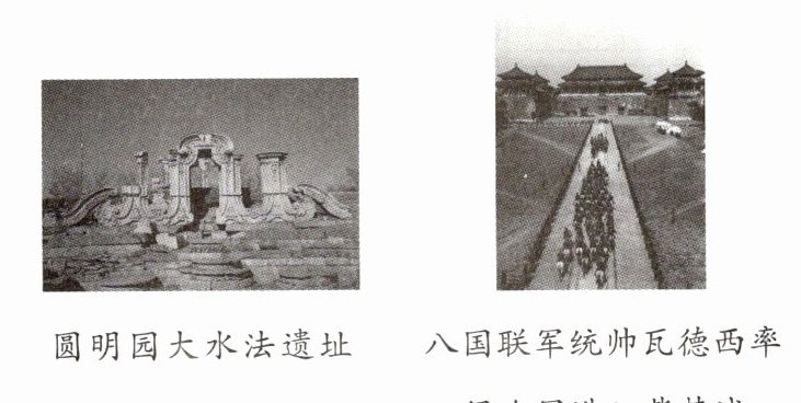 13. (史料实证、历史解释)苦难中国,风雨晚清,血泪湿山河。一座昔日充满着辉煌精奇房舍的北京城,变成一片罗列着萧条残雾的荒野。阅读下列材料,回答问题。(9分)