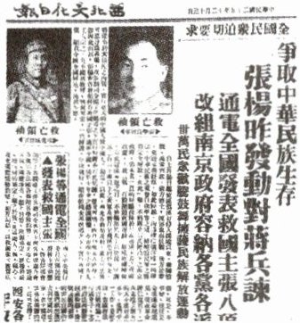 东北沦亡,时逾五载。国权凌夷,疆土日蹙……蒋委员长介公受群小包围,弃绝民众,误国咎深。学良等涕泣进谏,屡遭重斥。日昨西安学生举行救国运动,竟嗾使警察枪杀爱国幼童,稍具人心,孰忍出此!学良等多年袍泽,不忍坐视,因对介公为最后之诤谏……