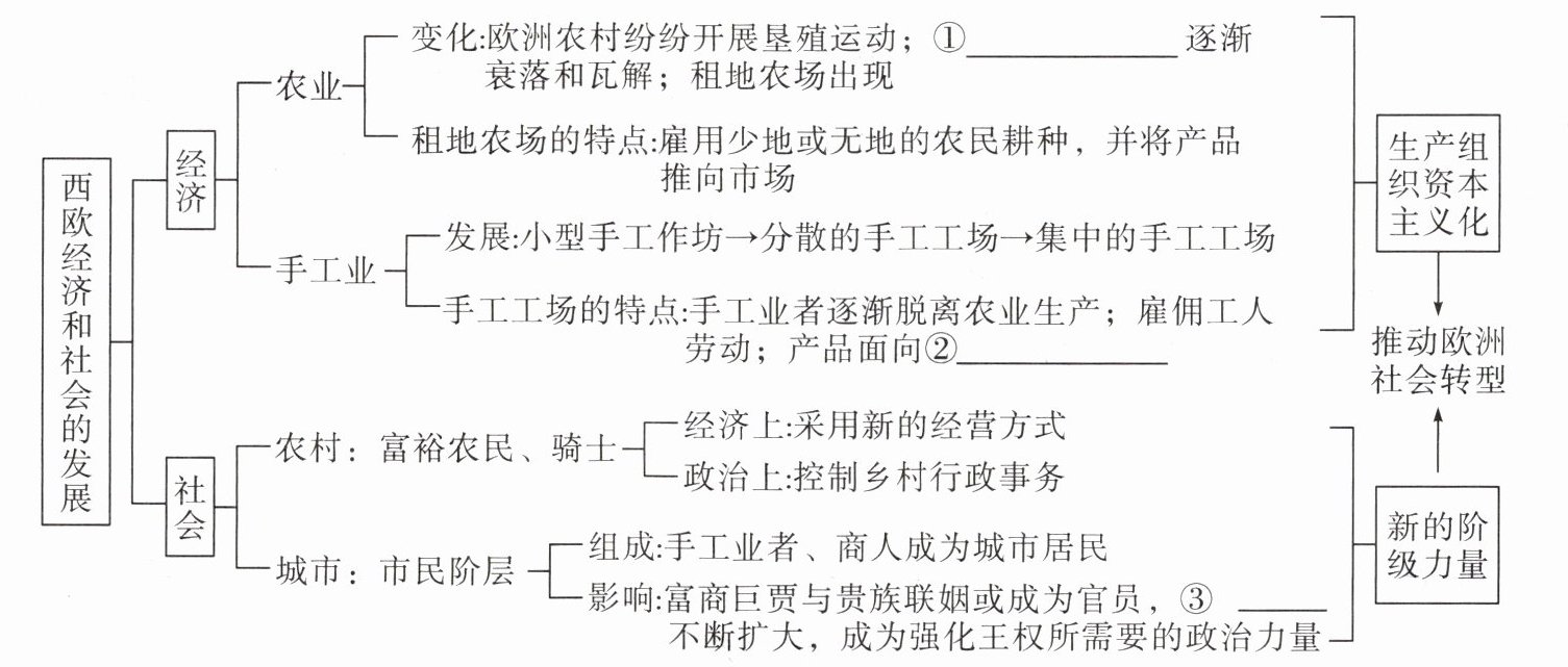 1. 本题考查西欧经济和社会发展的相关知识:
