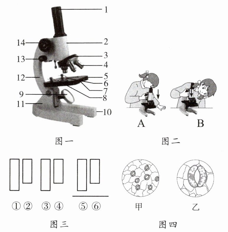 (2)使用图一中的单目显微镜进行对光时,需要通过调节[