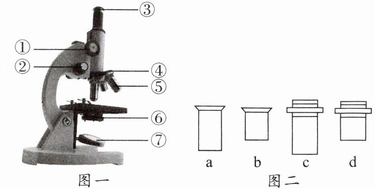 (2)小花在进行观察中,转动粗准焦螺旋使镜筒下降,图二中的