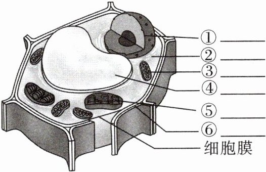 1. 保护和支持 2. 细胞膜 3. 细胞液 4. 叶绿体 5. 线粒体