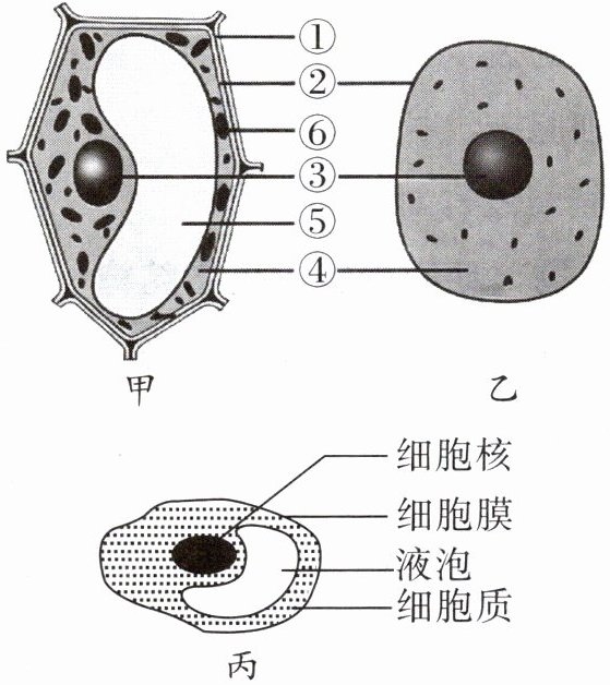 。(7)图丙是孙同学所绘的人的口腔上皮细胞结构图,请你指出图中存在的两处错误或不妥之处: