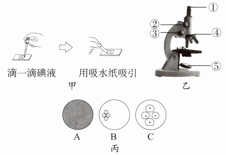 (6)为使图丙中的视野B转变为视野C,应先将要观察到的细胞移到视野中央,然后调节图乙中的[