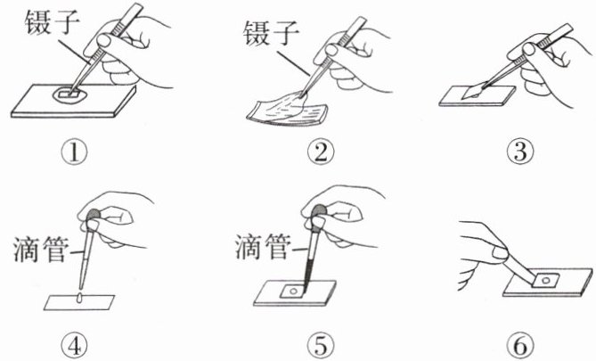 如图为制作临时装片的部分步骤示意图,请据图回答下列问题。