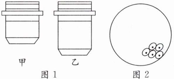 3. (贵州黔西南州兴仁市期中)用双目光学显微镜的一个目镜分别与图1中物镜甲、乙组合来观察人的口腔上皮细胞临时装片,图2是观察过程中看到的视野。下列说法错误的是(