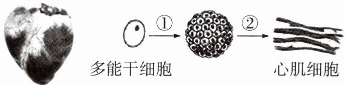 组织。(2) 3D打印心脏的心肌细胞和血管内皮细胞来自人体细胞培养出来的多能干细胞,如上图所示,在①